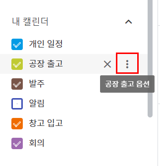 ✔️ 다른 캘린더 항목에서 "✖️"을 클릭